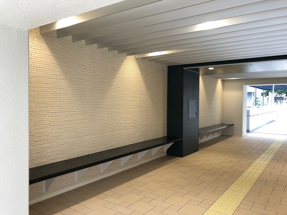エントランスホールにベンチを設置し、住民同士の交流の場として改修しました。