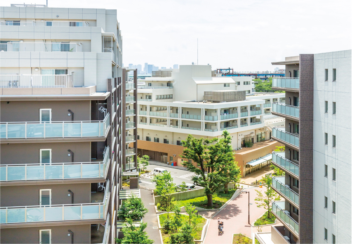 かつて活気のあったまちや暮らしやすい住まいを、高齢者、障害者、子育て世帯など、誰もが安全・安心に暮らし続けられるよう、平成19年(2007年)から建替え事業に着手しました。従前の32棟840戸を8棟1,019戸の大規模賃貸住宅や1棟50戸のサービス付き高齢者向け住宅として再生し、創出用地には高齢者施設や障害者施設を誘致、広域避難場所の整備など、住まいだけでなく、福祉や防災機能を強化するまちづくりに取り組んでいます。