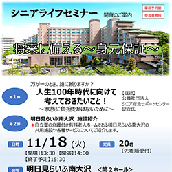 11月18日(火曜日)に、「シニアライフセミナー 将来に備える~身元保証~」を開催いたします。