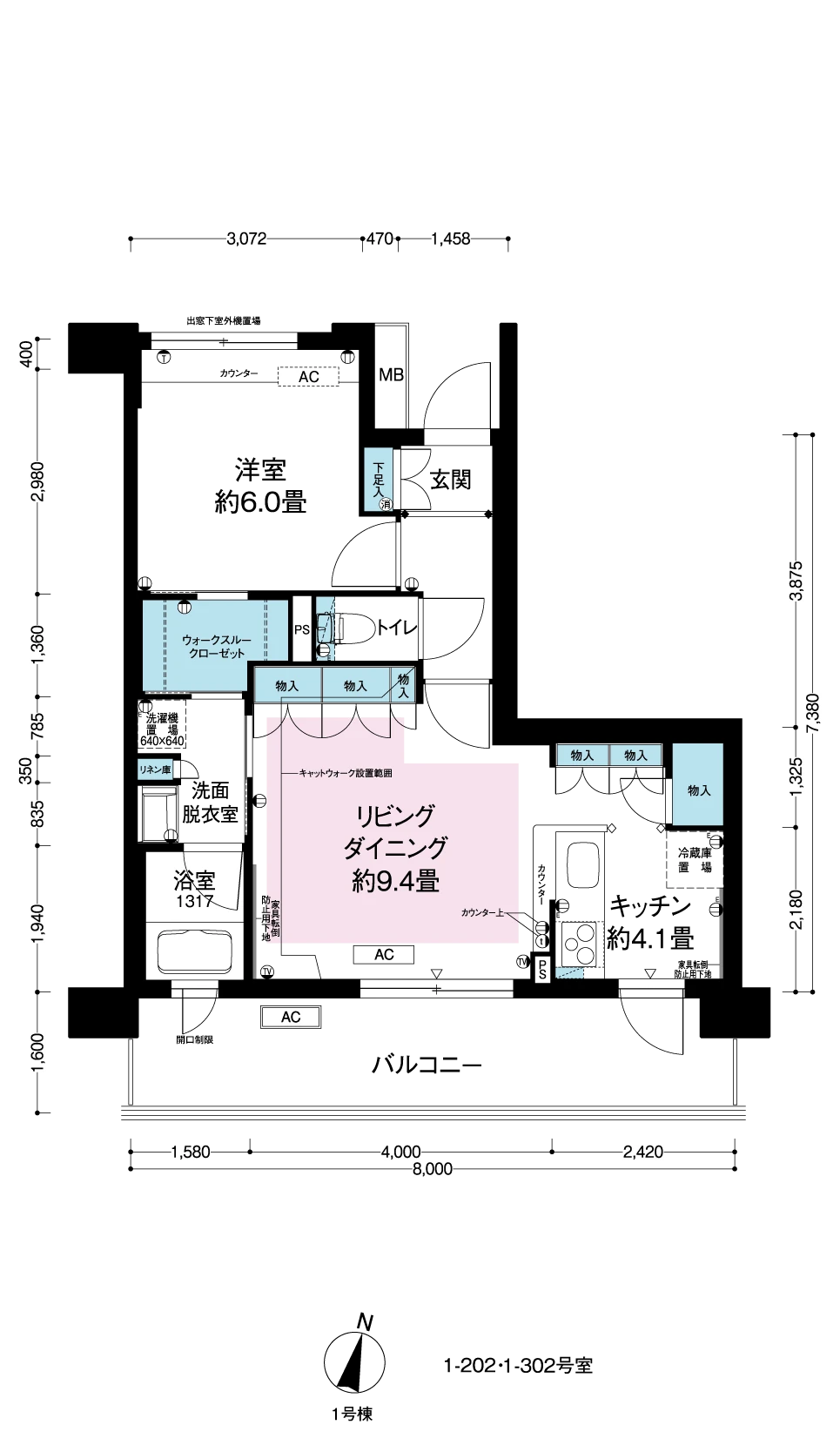 ※ペットゲート用下地(1号棟のみ)は床面から高さ約1,800㎜の範囲に設置されています。