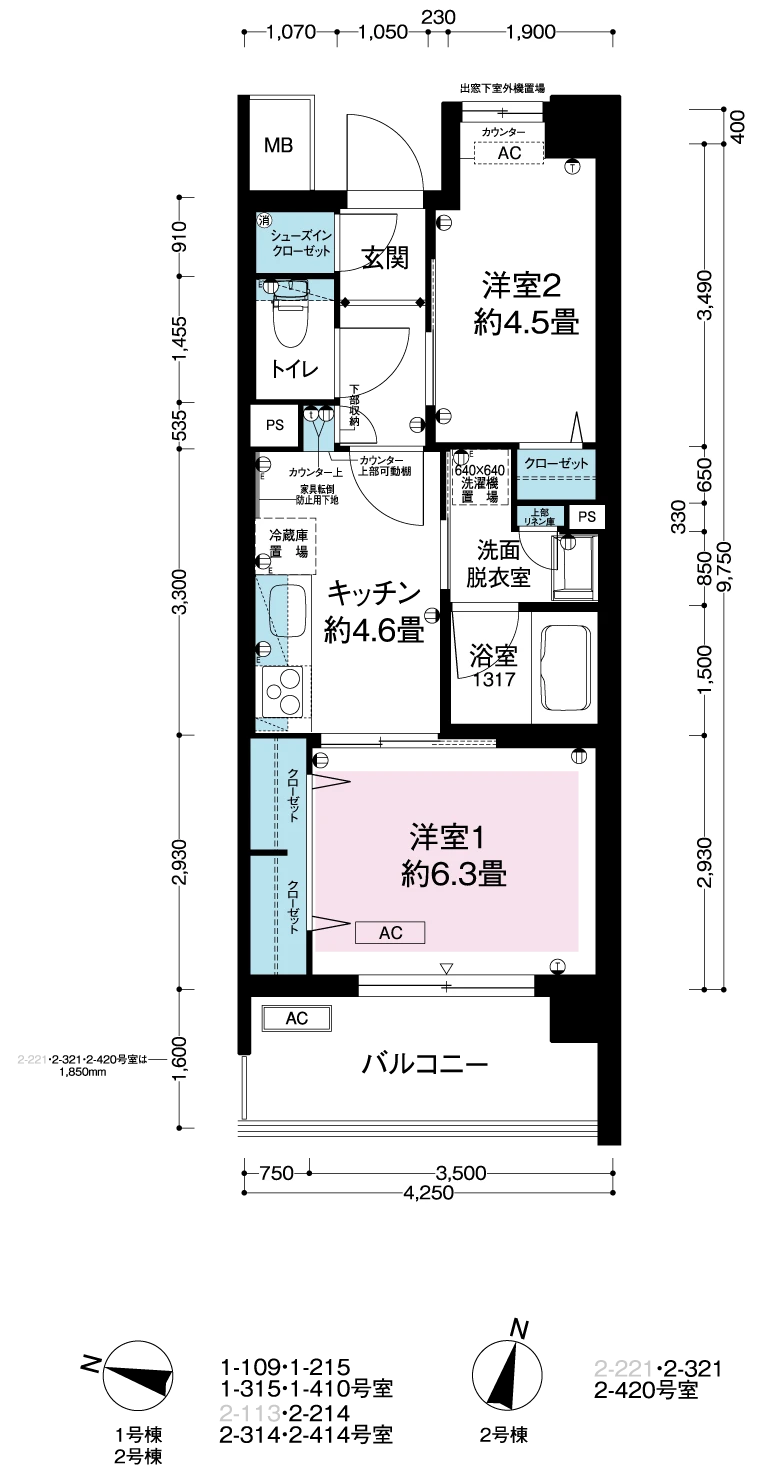 ※ペットゲート用下地(1号棟のみ)は床面から高さ約1,800㎜の範囲に設置されています。