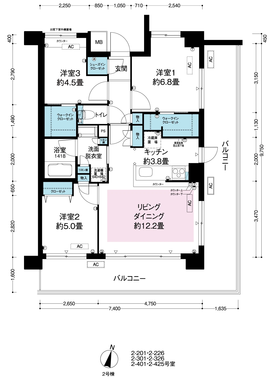 2-201,2-301,2-401号室