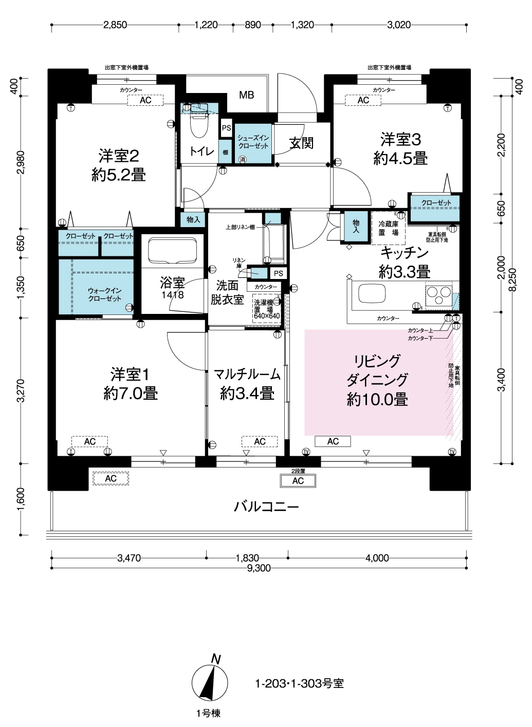 ※ペットゲート用下地(1号棟のみ)は床面から高さ約1,800㎜の範囲に設置されています。