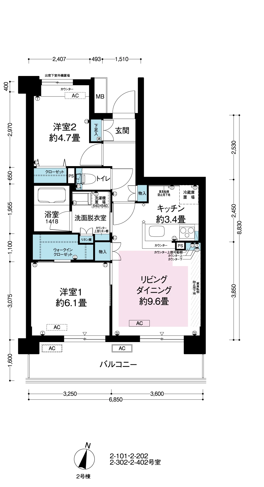 ※ペットゲート用下地(1号棟のみ)は床面から高さ約1,800㎜の範囲に設置されています。