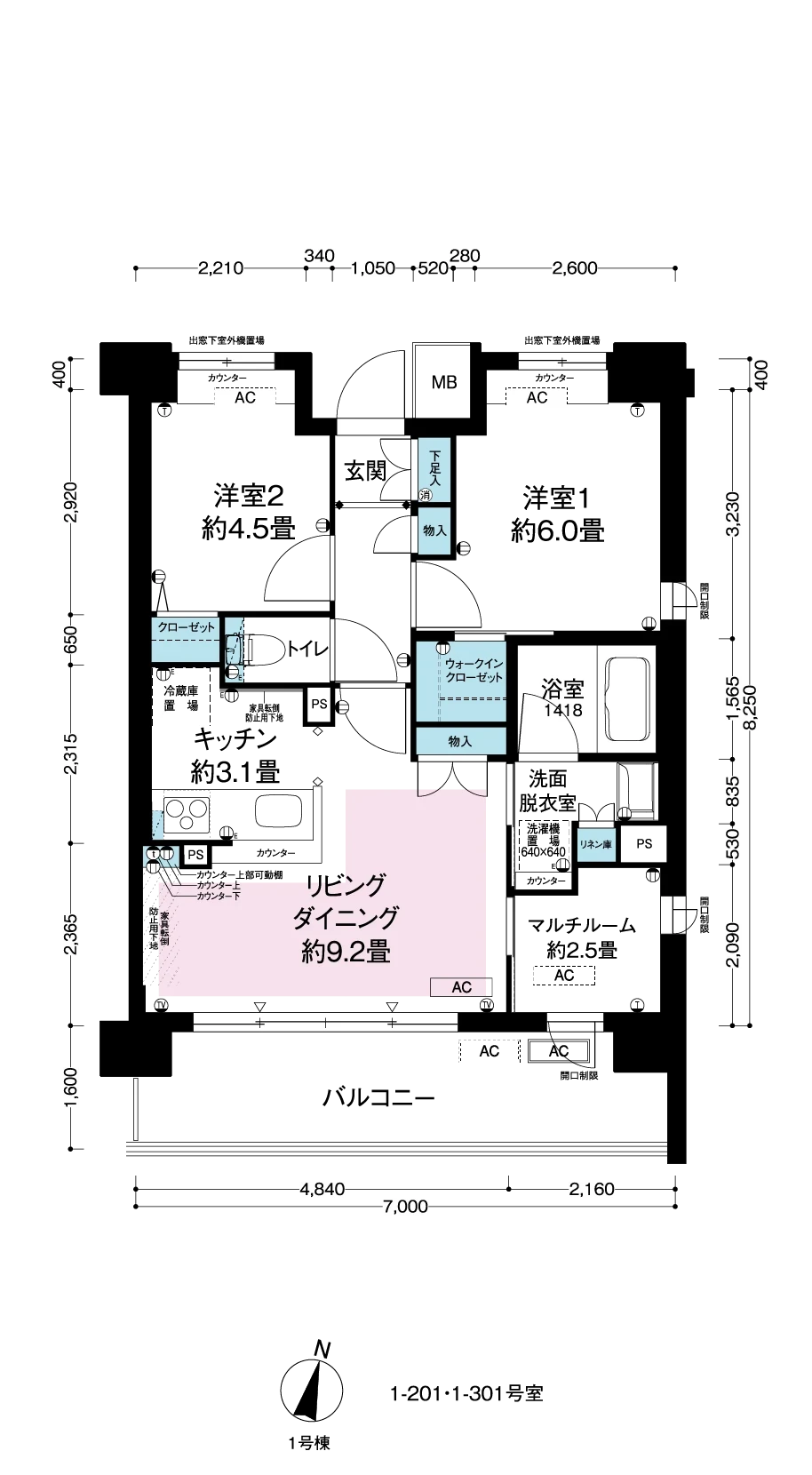 ※ペットゲート用下地(1号棟のみ)は床面から高さ約1,800㎜の範囲に設置されています。