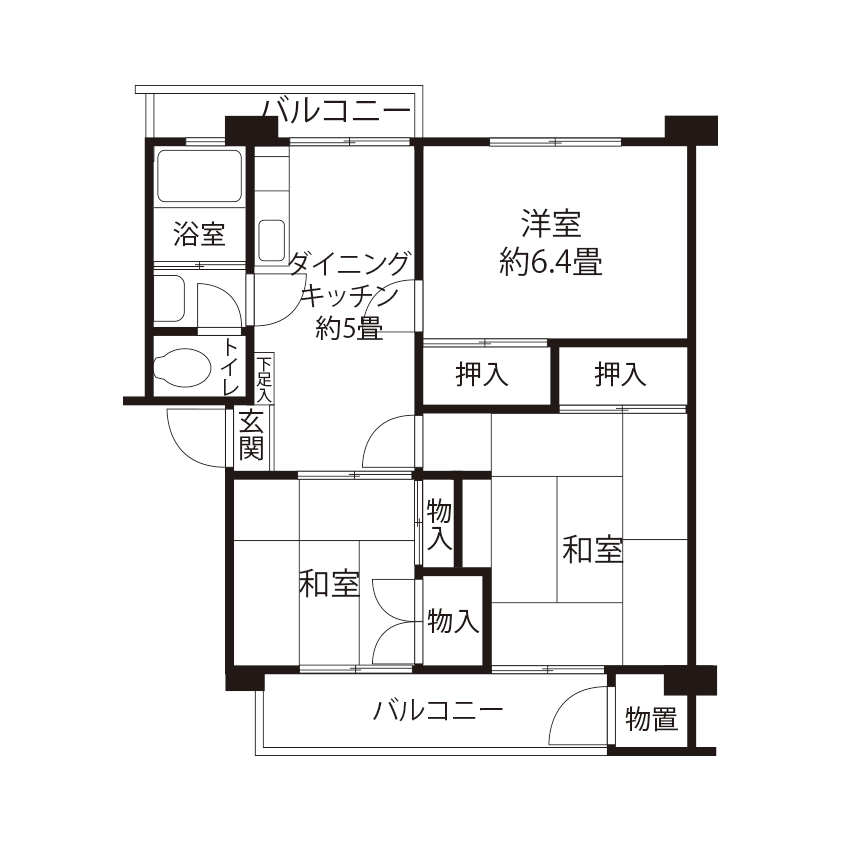 | 間取・面積 | 2LDK(LR1)61.26㎡ |