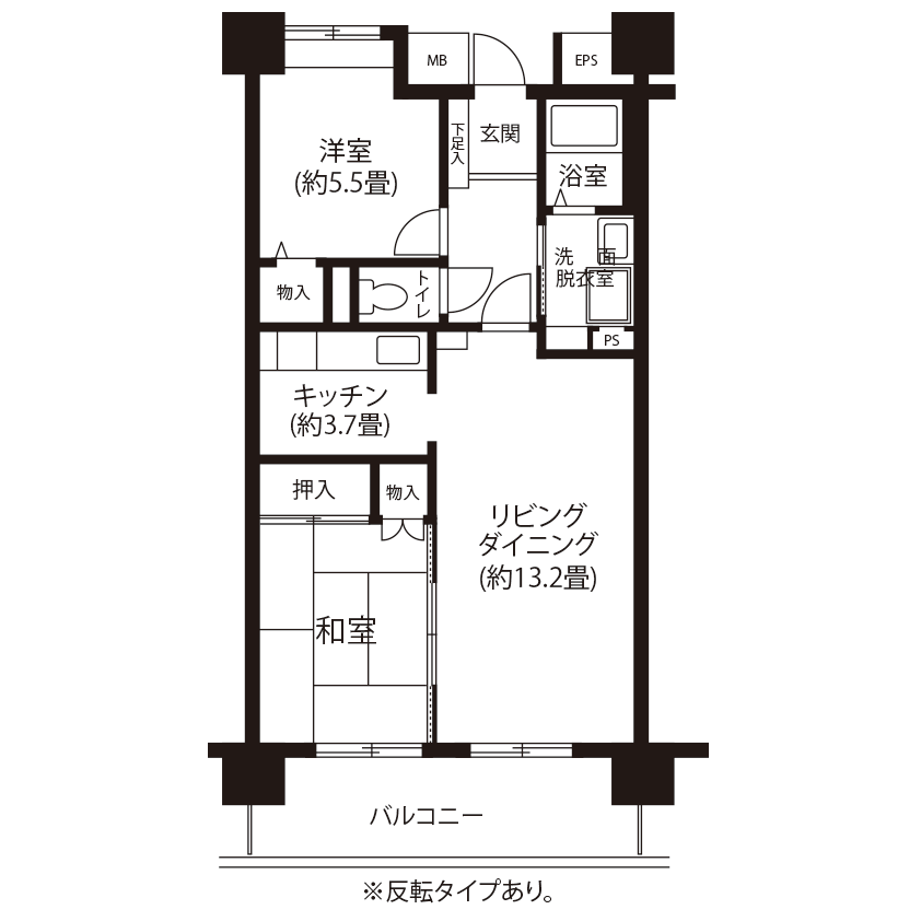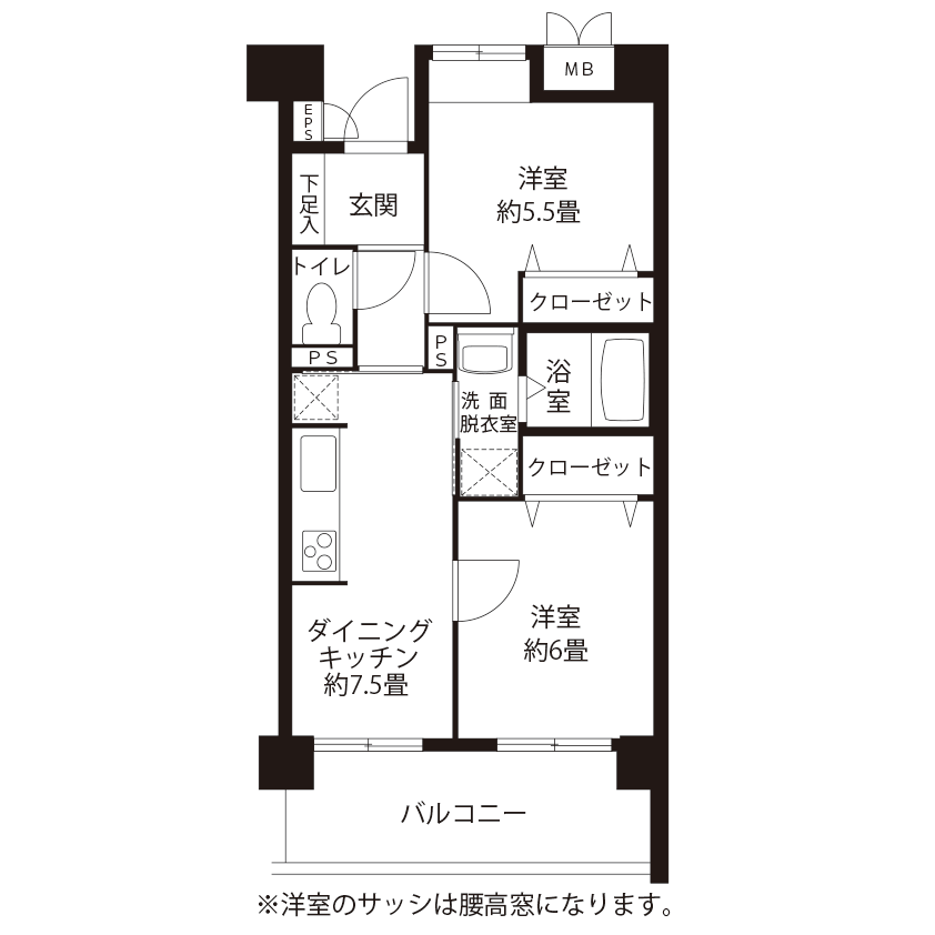 間取り(向き)2LDK(東)62.58m²