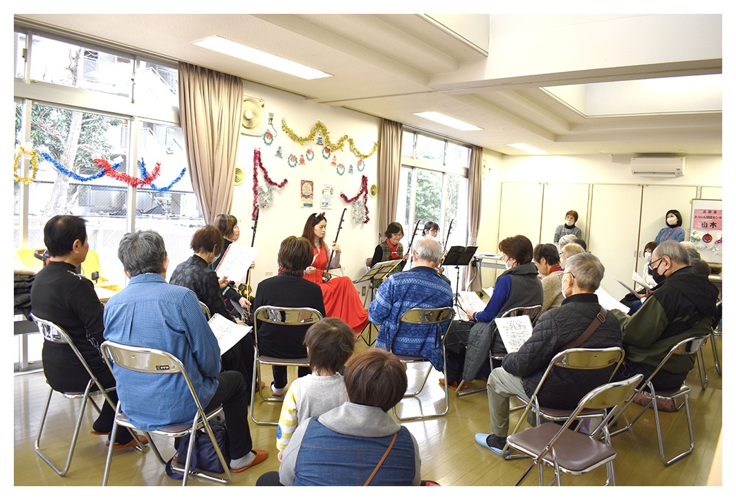 この日は「見上げてごらん夜の星を」「川の流れのように」「クリスマスソング」「賽馬」などが披露され、温かな音色に包まれた会場には大きな拍手が響き渡りました。