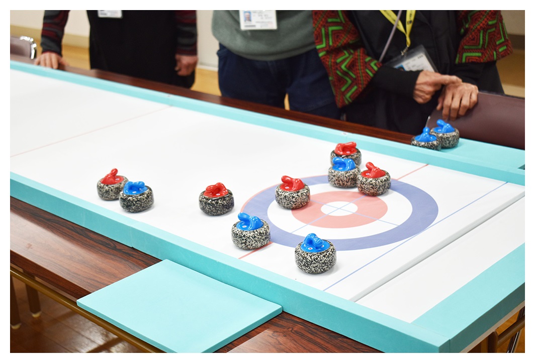 当日は、初めての方でも安心して取り組めるよう、まずは練習からスタートしました。ストーンを滑らせる角度や力加減に試行錯誤しながら、「もう少し強く!」「惜しい!」と声が飛び交い、笑い声もあちこちで聞こえました。