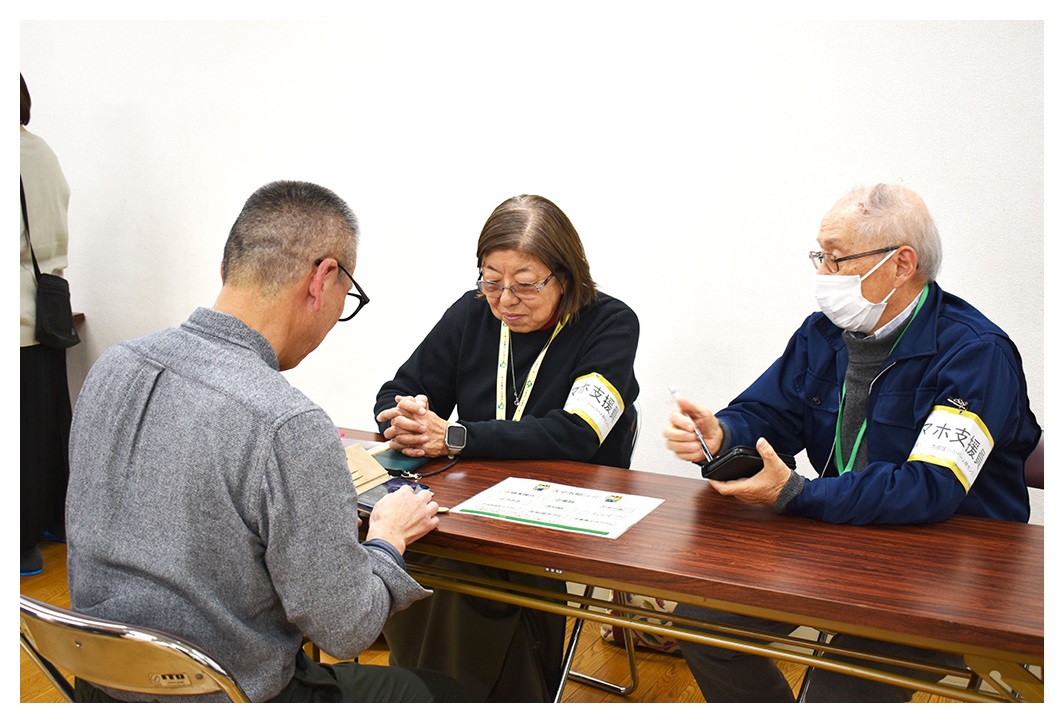 また、大田区シルバー人材センターによる「スマホ相談会」も行われました。相談内容は、スマホの基本操作、電話・メール・カメラ、LINEの設定、大田区シルバー人材センターのホームページの登録・使い方のほか、大田区防災アプリ、地図アプリ、乗り換え案内アプリなど、日常で活用できるアプリについての支援が行われていました。
