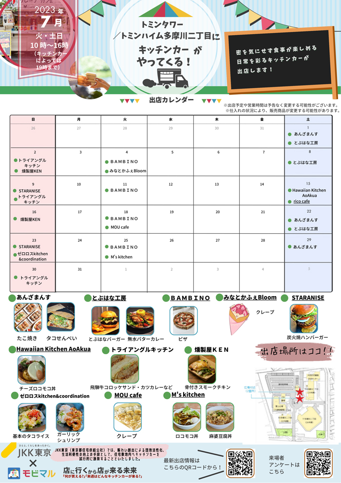 - トミンタワー・トミンハイム多摩川二丁目、久留米西住宅でキッチンカー・移動販売車が出店中です!