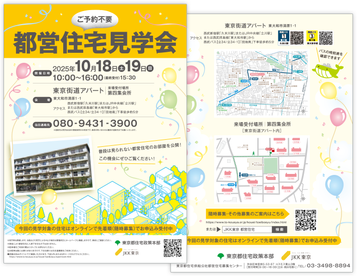 アクセス:西武新宿線「久米川駅」またはJR中央線「立川駅」または西武拝島線「東大和市駅」から西武バス【立34/立34-1】「団地南」下車徒歩約5分 ※参加により都営住宅に入居できるものではありません。
