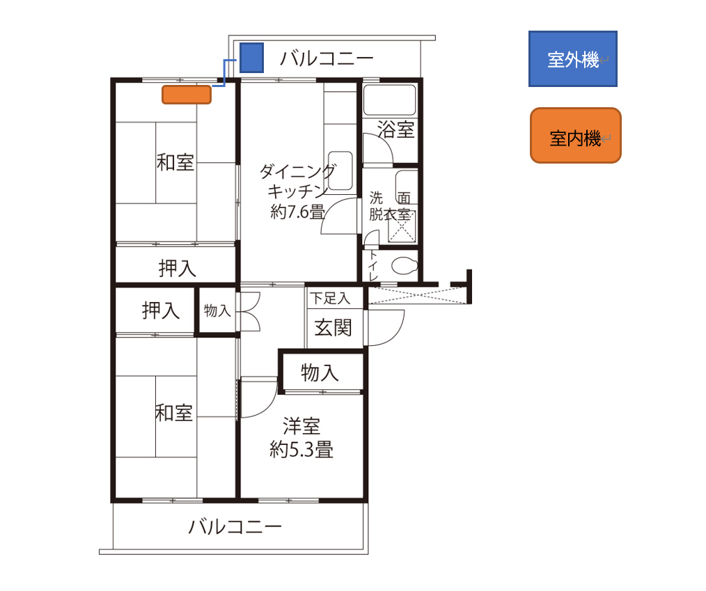 - ※エアコン用スリーブがない場合は『エアコンの設置を検討される皆様へ』の『【POINT1】エアコン「室内機」を設置できる場所』をご確認ください。