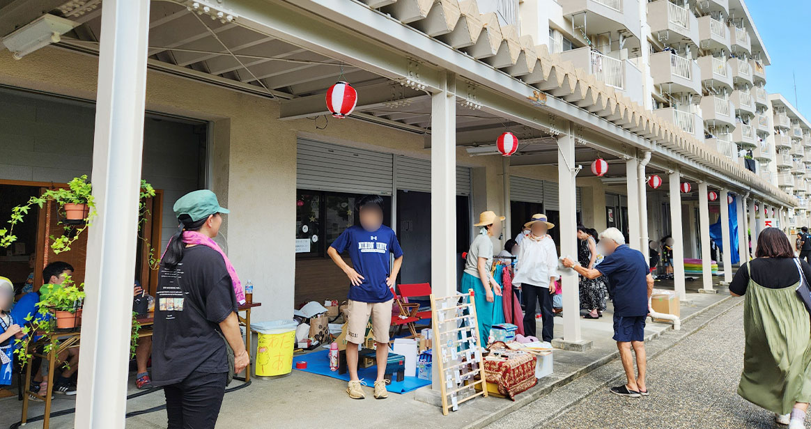 また、同年8月には近隣保育園や団地住民との新たなコミュニケーション作りの試みとして、松枝商店街の夏祭りが行われました。